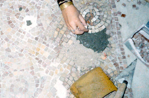 Mosaico en proceso de restauración. |